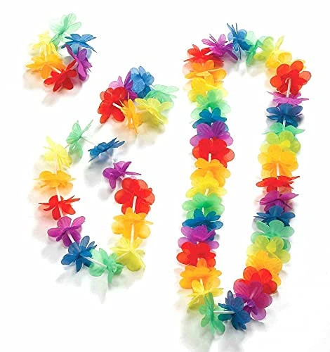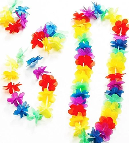 This Hawaiian Flower lei set is everything you need to dress up for your next summer luau party. Celebrate summer in these fun silk flower lei wristlets.