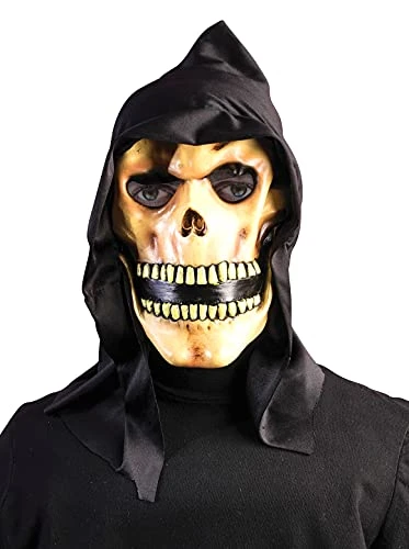 - Oversized face mask with attached black hood