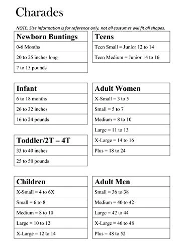 - Costumes are sized differently than clothing, IMPORTANT to consult Pizazz! costume chart before making selection