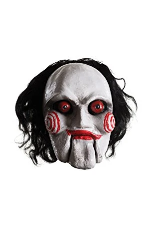 Adult sized saw mask. Mask cleaning instructions use a cloth dampened with a small amount of water to gently wipe inside and out; allow to dry completely before storing. As the world’s costume leader, Rubie’s costume company takes seriously the mission to make dressing up fun Mascots, rental quality costumes, masks, wigs, accessories, shoes, and an enormous range of licensed characters can all be found under the Rubie’s brand. Started in New York in 1950, and still family owned and family focused, Rubie’s brings you fun for every season Halloween, Christmas, mardi gras, Easter, and all in-between
